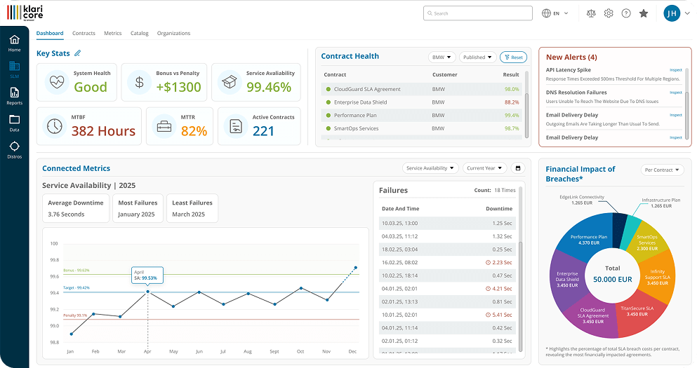 klaricore is a modular, enterprise-grade platform that transforms IT data into strategic insights. It goes far beyond SLA tracking-enabling large organizations to manage service performance, user experience, ESG goals, and IT risk in one unified system.
